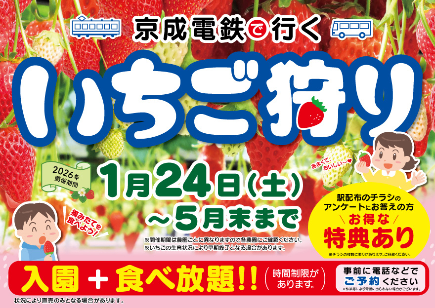 「京成電鉄で行くいちご狩り」を開催いたします